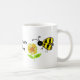 Uma caneca bonita para um jardineiro ocupado. Bombardeiros com expressões bonitinhas e flores amarelas sombreadas. O ditado pode ser mudado se assim o desejar.