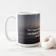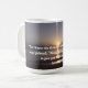 Uma caneca de café com um nascer do sol e o estímulo verso Bíblia de Jeremiah 29:11.