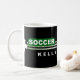 Bola de futebol com design de listras, nome na caneca pode ser personalizado