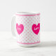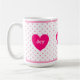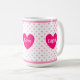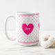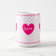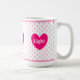 Linda caneca com coração, bolinhas cor-de-rosa e alegria personalizada, amor, texto leve.