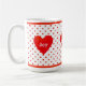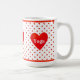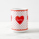 Linda caneca com coração, bolinhas vermelhas e alegria personalizada, amor, texto de yoga.