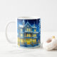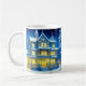 Joyeux Noël Bonito caneca de café Blue Christmas House.