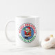 Joyeux Noel French Christmas Santa mug. Say "Merry Christmas" with this cute, cartoon, Christmas Santa mug. Show off your French heritage and your holiday spirit with this festive mug. Great for the home or office.