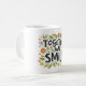 "Juntos sorrimos" num vibrante gradiente arco-íris. Cada palavra passa suavemente de uma cor para a outra, criando um olhar alegre e otimista.A imagem que você carregou mostra uma caneca com a frase "JUNTOS NÓS SORRIMOS" cercada por flores e folhas coloridas. Isto pode ser uma ideia de presente de excelente ou um símbolo de positividade e trabalho em equipe.