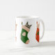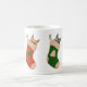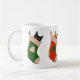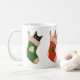 Vier süße Katzen in grünen und roten Weihnachtsstrümpfen