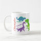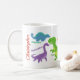 Uma linda e colorida caneca de Dinossauro personalizada de Criança com dinossauros de desenho animado bonitos e seus nomes em uma fonte brilhante e divertida. A Mug tem um Tyrannosaurus Rex ( T-Rex), Pteranodon, Brontosaurus, Ankylosaurus, Plesiosaurus, Velociraptor e um Stegossauro, todos em diferentes cores de verdes, blues, vermelho e roxo. Faria o presente perfeito para um aniversário ou qualquer outro evento. Personalize com o nome da criança.