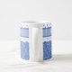Uma bonito Mug de Café Cerâmico Branco para personalizar, com um design de motins Periwinkle no estilo vintage, em fundo azul, agrupada com azul em Bolinhas brancas e aparada com Lace Faux. Parte da coleção Posh e Painterly 'Periwinkle Patch', este padrão pode ser facilmente personalizado para ajustado qualquer Mug e a fonte também pode ser personalizada.