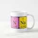 Ladonna escreveu como La D O N Na (Lanthanum Deuterium Oxygen Nitrogen Sodium) em uma caneca para o cientista em você.