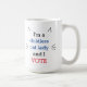 "Sou uma gata sem filhos e VOTO", caneca, com ouvidos de gato e bigode. Branco, azul, vermelho e preto. O mesmo design de ambos os lados.