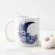 Mug de lua de aquarela personalizada com mística, celeste e design floral em cor roxa e azul com flores lindas.