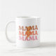 Esta é uma caneca de café colorida e nostálgica com as palavras "Mamãe Mama" escrita em laranja e rosa. Seria um presente excelente para Dia de as mães ou qualquer ocasião para mostrar apreço por uma mãe especial. O design retro adiciona um toque de charme de vintagem à caneca, fazer-a de uma ideia única e ponderada de presente. É perfeito para desfrutar de uma xícara de café ou chá quente e certamente colocaria um sorriso no rosto de qualquer mãe.