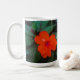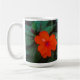A flor de laranja na fotografia original de ZoeSPEAK sobre esta Mug é uma Nova Guiné impaciente flor, sua cor de laranja intensa quase brilhando nas sombras. As delicadas pétalas parecem sobrepostas sobre as folhas verdes escuras da planta. Há um texto de nome definido para você personalizar ou excluir se preferir.