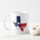 Laredo, caneca de café no mapa do Texas. Este design apresenta "Laredo" em um script, letra estilo caligrafia em branco com contorno de cinza clara no topo do mapa do estado que está preenchido com a bandeira do Texas. Esta caneca de café da cidade é uma forma excelente de apreciar o seu café e mostrar que se orgulha de ser de Laredo, TX.
