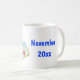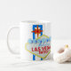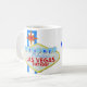 Caneca do aniversário de Las Vegas com uma versão feita sob encomenda do sinal de néon famoso. O modelo opcional do texto para a data ou a outra personalização pode igualmente ser suprimido antes da compra.