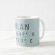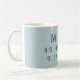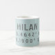 Caneca de café elegante com coordenadas de latitude e longitude do mapa de Milão, Itália, em fonte urbana moderna