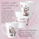 These adorable cat illustrations feature whimsical, fluffy cute kitties with oversize expressive eyes, they feature soft pastel tones, in heart-filled scenes that captures the playful and loving personality of cats. The text caption is fully editable to allow customization to fit your occasion or need. This hot beverage mug is perfect for cat lovers, animal lovers, and fans of hand drawn and kawaii style artwork, A heartwarming kitten design that will capture the heart of anyone you may wish to gift it to. It can be a perfect gift for a mother, sister, aunt, girlfriend, cat mom or anyone who loves animals, cats, or kittens.
