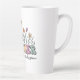 Ajudando as mentes pequenas a crescer - Um tributo floral aos professores Latte Mug Uma explosão de florais desenhados à mão em tons alegres - amarelo, laranja, rosa e roxo - floresce acima da palavra "PROFESSOR" em letras negrito e multicolorido. Abaixo dela, a frase sentida "ajudar as pequenas mentes a crescer" é elegantemente escrita, capturando o espírito de nutrição e o impacto duradouro dos educadores. Uma celebração vibrante e animadora daqueles que ajudam as mentes jovens a prosperar.