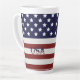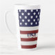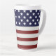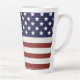 America Flag American USA Pattern Latte Mug, Blue, red & white Fireworks e a bandeira americana exibem um fundo azul para celebrar o Dia da Independência. Feliz 4 de julho, Sacudir o final do nosso feriado patriótico de verão, convidando-o para ver a correspondência de volta. Na moda Latte Mug para um churrasco comemorativo do dia 4 de julho, festa do dia do trabalho ou qualquer festa patriota. América Flag com faixas vermelhas, vermelhas e brancas e estrelas brancas sobre fundo azul marinho. As estrelas representam os Estados da América. Ideal para vestuário, decoração doméstica, acessórios e presentes. Mostre seu patriotismo nos EUA no dia 4 de julho ou no Dia do Memorial ou em qualquer evento esportivo. #puleceblanket #americano #usa #patriota #esportistas