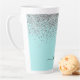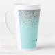 Caneca De Café Latte Aqua Azul Verde Turquesa Prata Glitter Monograma