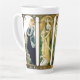 Uma maravilhosa colagem de Art Nouveau, uma bela arte de mulheres em vestidos lindos, com um Peacock, Doves, um Swan e Pássaros Engolidos voando, com um aparato floral, está nesta Latte Mug. As imagens são dominios públicos devido a direitos autorais expirados.
