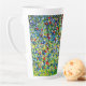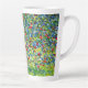 Latte Mug com a pintura da Árvore Apple de Gustav Klimt, I (1912). Uma macieira vermelha colorida fica em um campo verde de flores roxas, rosa, amarelas e brancas. Um presente perfeito para fãs de Arte Nouveau e de Arte Austríaca.
