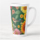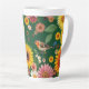 Caneca De Café Latte Aves E Flores De Fundo Verde Escuro