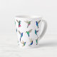 Caneca colorida para amantes de beija-flores apresentando várias espécies de beija-flores tropicais pintadas à mão, tais como um beija-flor de garganta negra, beija-flor de garganta ferrada, apphire de boia azul, apphire de cauda Ouro, beija-flores e beija-flores de pântano. Imagens tiradas de pinturas de aquarela originais por C. Dobbins.