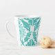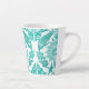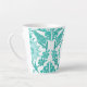 Caneca De Café Latte Azulejo Floral do Farmhouse Branco e Teal | Monogr