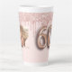 Um presente para 60 anos. Um fundo cor-de-rosa pincelado decorado com gotas de brilho suave, elegante rosa dourado, pintura gotejante. Personalize e adicione sua própria foto da aniversariante. O número 60 é escrito com uma fonte do estilo do balão de tendência.