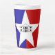 Latte Mug com a bandeira de San Antonio, Texas. Uma bandeira azul e vermelha com estrela branca e uma ilustração de Álamo no meio