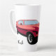 Big red car graphic on a stylish tall latte mug