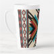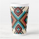 A Southwestern-inspired geometric pattern featuring striking diamond and chevron shapes in turquoise, deep red, black, and warm neutral tones. This symmetrical design draws inspiration from bohemian textiles, creating a timeless yet modern look.