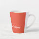 Latte Mug: Pequena Lata Mug Se você gosta de café bebendo um latte, não apenas um pouco, então esta caneca é para você! Na moda e pronto para suas personalizações, ele se tornará facilmente uma parte essencial do seu dia. Disponível em Dimensões de 12 ou 17 onças: 12 onças: 3,5" D x 4" H 17 onças: forma cônica de 3,5" D x 6" com alça em forma de orelha Micro-ondas e máquinas de lavar loiça Forte construção cerâmica Satisfaz os requisitos do FDA para segurança de comidas e bebidas