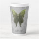 Aproveite seu café de manhã ou café com uma borboleta talhada personalizada latte mug. Mug design apresenta uma borboleta vibrante e joalhada contra uma cor damasco elegante de cinza. Itens de presentes adicionais disponíveis com este design, bem como uma variedade de cores.