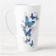 Borboletas azuis voadoras morfo e borboletas brancas em um fundo de abstrato leve. Morpho. Design com borboletas azuis morpho.