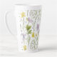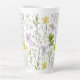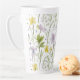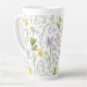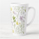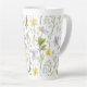 Uma grande caneca de latte adornada com delicadas botânicas amarelas, lavanda e verdes, trazendo um toque fresco e elegante para os rituais lentos da manhã e fazendo um presente refinado para quem ama louças inspiradas na natureza e artísticas.