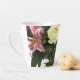 Esta linda caneca de café apresenta uma fotografia de um buquê real de lírios coloridos, e rosa um presente de excelente Dia da Mãe. Adorável trabalhar em equipe com um cartão e porta copos latte para um presente verdadeiramente coordenado.