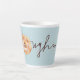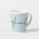 Aprecie-se com um prazer espumante todas as manhãs, enquanto procura o café retro inspirado e donuts na caneca de café. Este design original é colocado sobre um fundo azul-vintage, escrito à mão e pintado à mão com uma rosquinha antiquada usando aquarelas, e depois pintado com açúcar de canela. O que é melhor que café e donuts?