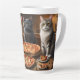 São Quatro Gatos Sentados Em Torno De Uma Mesa Com Uma Pizza Pronta Para Comer.