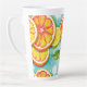 This large latte mug showcases a vibrant citrus design featuring juicy slices of orange, lemon, and lime illustrated in a lively, modern style. Set against a bright teal background with dynamic splash accents and fresh green leaves, the artwork creates an energizing, refreshing look that brightens every morning ritual. With its tall, elegant shape and generous capacity, this mug is perfect for lattes, cappuccinos, tea, cocoa, or cozy evening drinks. Durable, glossy, and full of personality, it brings a burst of color to daily routines and makes a cheerful, memorable gift for fruit lovers and fans of uplifting design.