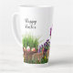 Caneca De Café Latte Coelho da Páscoa Feliz no Jardim de Tulipas