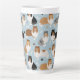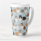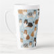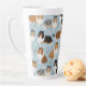 Cães de Collie Rough Cute sentam-se e ficam de pé e rollover com casacos sápidos, tricolores, unidos e brancos com ossos de cão espalhados e padrões de pegadas.