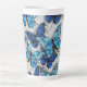 Caneca De Café Latte Composição de Borboletas Brancas e Azuis