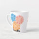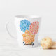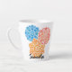 Linda latte Mug apresentando três Mandalas Florais coloridas em azul, rosa vermelho e laranja em um fundo branco com um nome de texto de tipografia que você pode alterar ou excluir do Menu Personalizar. Arte original de SunFreeStar.