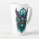Coruja com elementos mágicos. A design apresenta uma coruja impressionante e estilizada com suas asas espalhadas por toda parte, projetada em uma paleta de cores vibrantes de roxo, azul e branco. A coruja expele uma presença majestosa, enquanto seus olhos amarelos piercing olham diretamente para o espectador, criando um senso de intensidade e mistério. Padrões insípidos e giratórios se desdobram em torno da coruja, lembrando símbolos mágicos, dando à imagem geral uma aura mística.