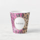 Caneca De Café Latte Creme Rosa Leopard Animal Sparkle