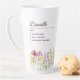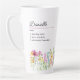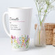 Caneca de latte de flor selvagem com definição de nome personalizado. O modelo de personalização está pronto para você adicionar seu nome e sua definição escolhida, listando 3 atributos pessoais, características ou habilidades que podem ser verdadeiras, engraçadas, boas ou ruins. O design apresenta delicadas flores silvestres de coloração aquática de campo, cor rosa, azul roxo e amarelo. Ela é escrita com escrita casual moderna e tipografia clássica. Sinta-se livre para mudar a fonte ou a cor de fundo para o seu conjunto (clique em "editar usando a ferramenta design").