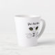 Esta caneca Latte tem um desenho gravado preto de um rosto de gato com bigodes longos e olhos verdes vibrantes. Personalize seu texto com o modelo.