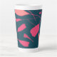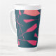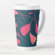 Esta caneca mostra uma expressiva mão artística desenhada de forma clara e as pétalas cor-de-rosa escuras se espalharam em uma superfície preta.