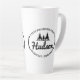 Este simples mas eficaz design de caneca latta, apresenta uma linha de árvores de abeto que aparece no seu nome em texto de script e seu endereço ou outro texto em um fundo oval. Perfeito para um item de promocional da empresa ou criar um conjunto completo como um belo presente de aquecimento da casa. Procure ID304 para ver outros produtos com este design.
